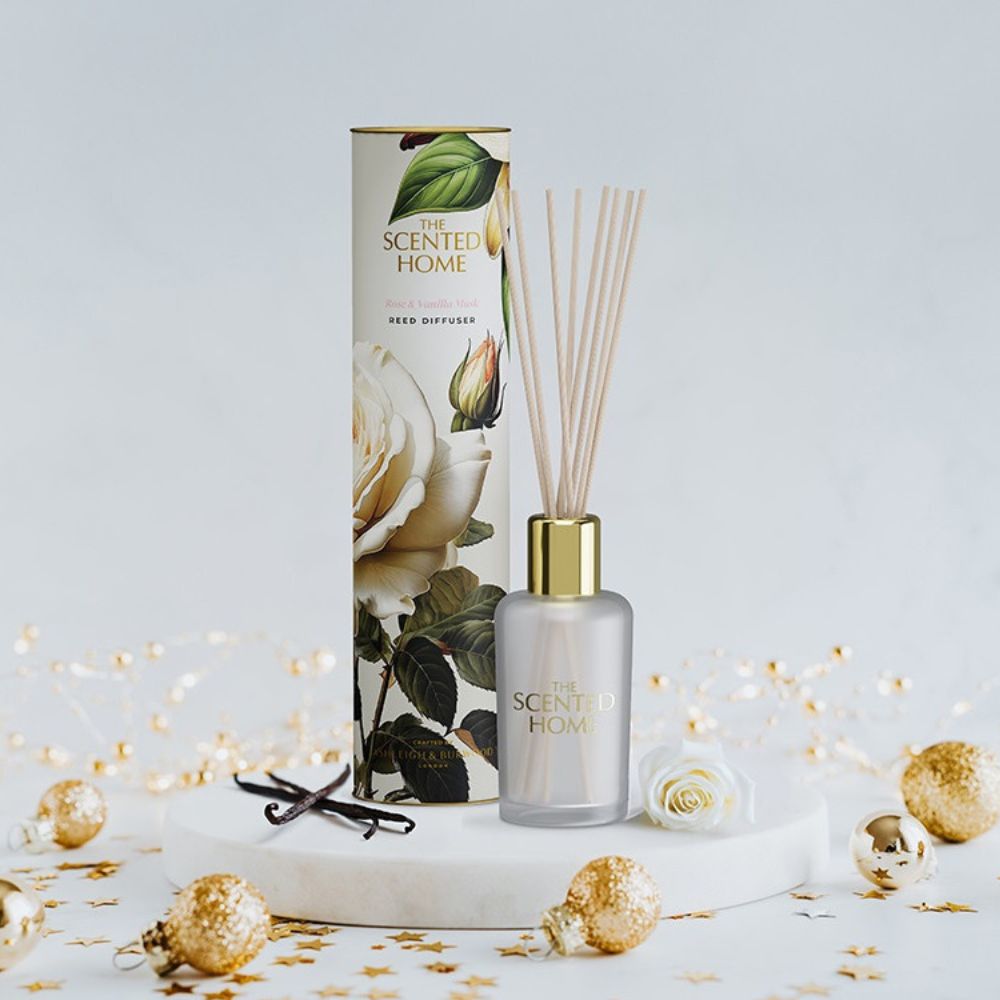Breng een vleugje elegantie in huis met de Ashleigh & Burwood Geurstokjes Rose & Vanilla Musk.