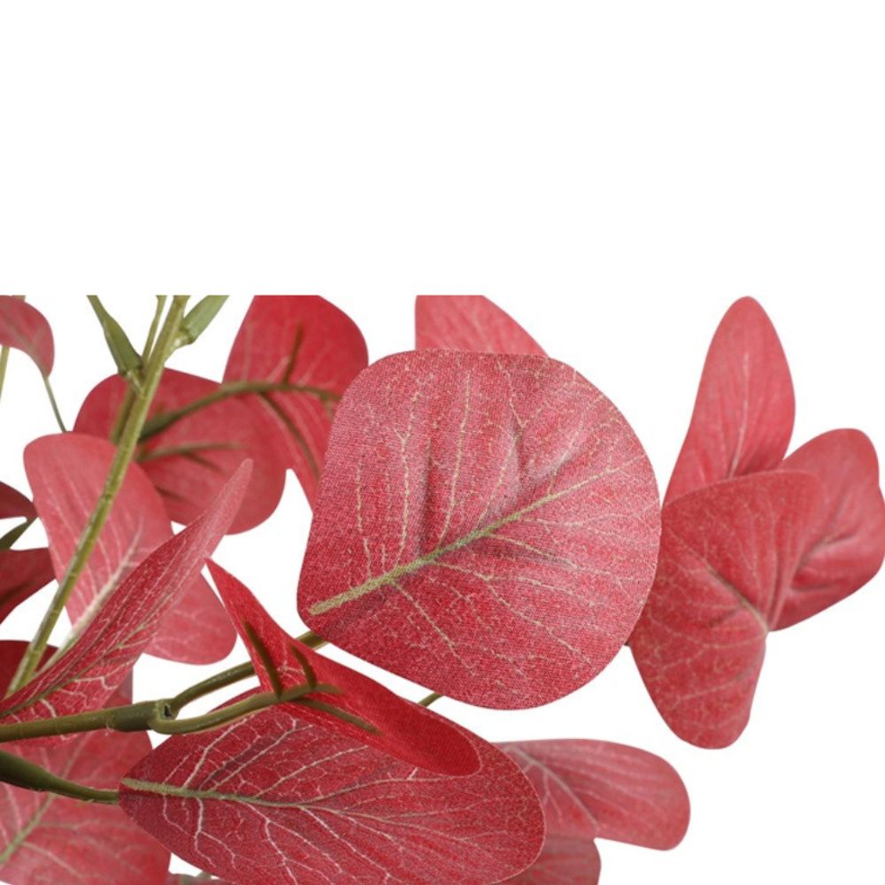 Breng warmte en elegantie in huis met deze prachtige kunstplant Eucalyptus S in diepe roodtinten.