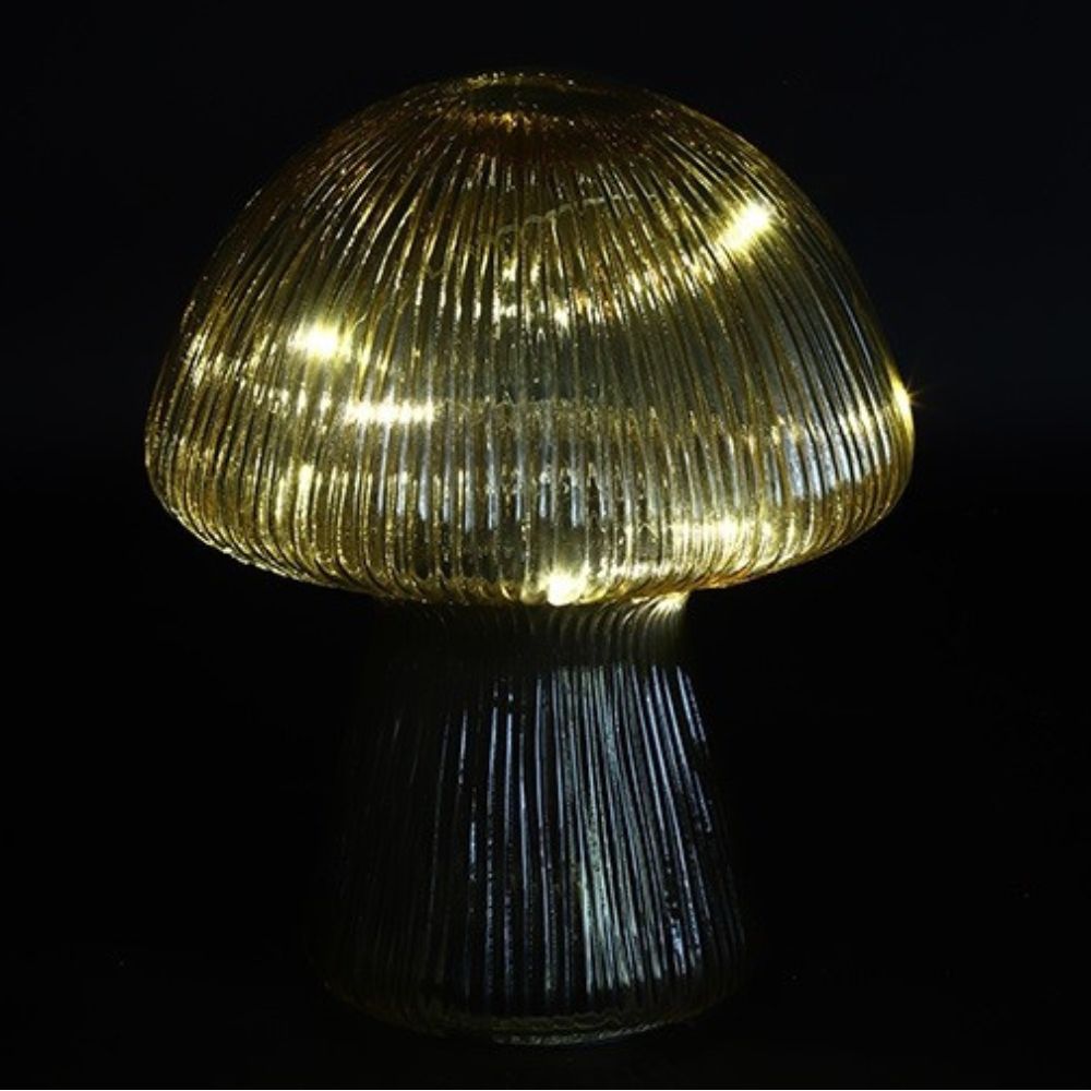 Deze unieke tafellamp van Countryfield is een echte blikvanger π. Met zijn moderne paddenstoelvorm en warme amberkleurige glas verspreidt de lamp een zachte, uitnodigende gloed die elke ruimte gezelliger maakt.