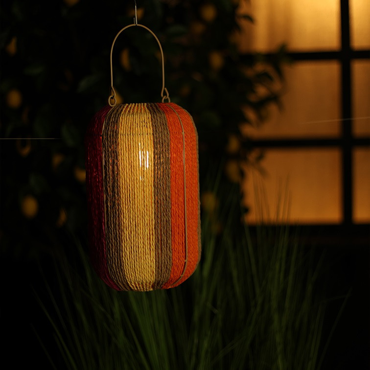 De speelse meerkleurige afwerking in combinatie met het jute detail geeft deze lantaarn een frisse, moderne uitstraling met een warm accent.