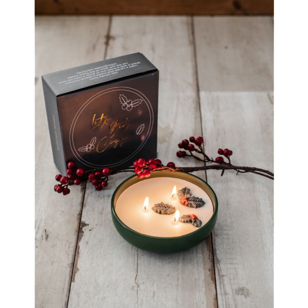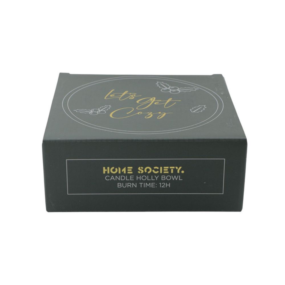 Breng direct warmte en gezelligheid in huis met deze sfeervolle wax kaars van Home Society. De kaars is gegoten in een keramieken bowl in een stijlvolle kerstgroene tint en gevuld met luxe wax met meerdere lonten voor een prachtig, gelijkmatig vlambeeld.