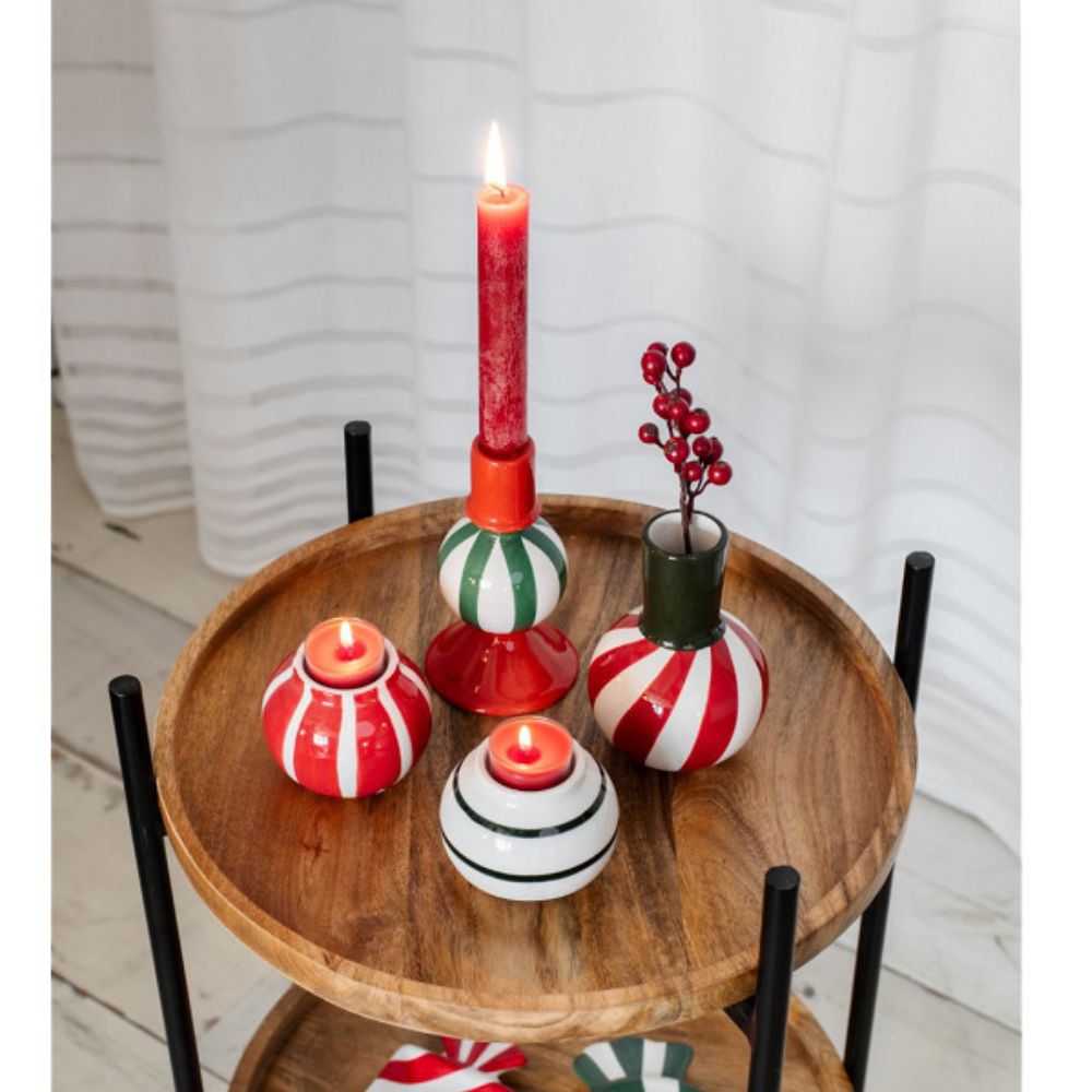Deze porseleinen kandelaar straalt pure kerstsfeer uit met zijn vrolijke, klassieke kerstkleuren.