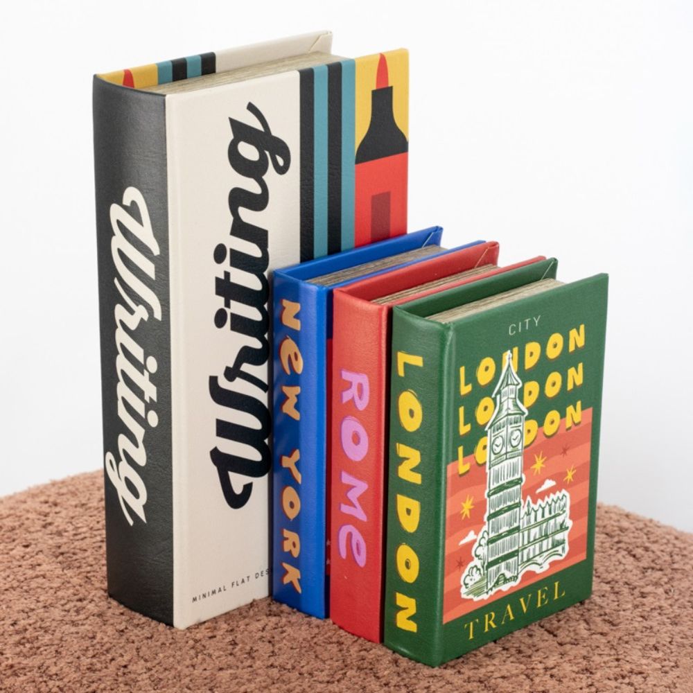 Stijlvol Ên praktisch â dit opbergboek met writing thema is een echte sfeermaker op je koffietafel of in een open kast. Aan de buitenkant lijkt het een mooi decoratieboek, maar binnenin zit een handige opbergruimte voor kleine spulletjes die je liever uit het zicht houdt.