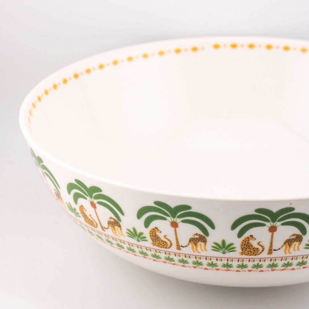 De Verde serveer schaal van Homebound by KY combineert frisse groene accenten met een speelse palmboom en een opvallend luipaarddetail. Een echte blikvanger tijdens iedere lunch, borrel of diner.