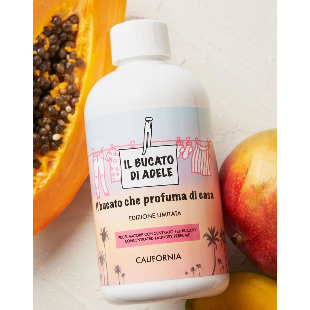 California is een frisse en zonnige geur die je wasgoed een heerlijk zomers karakter geeft. De levendige combinatie van citrus, bloemen en exotisch fruit zorgt voor een energieke en vrolijke geur die je kleding en textiel langdurig fris laat ruiken. โจ