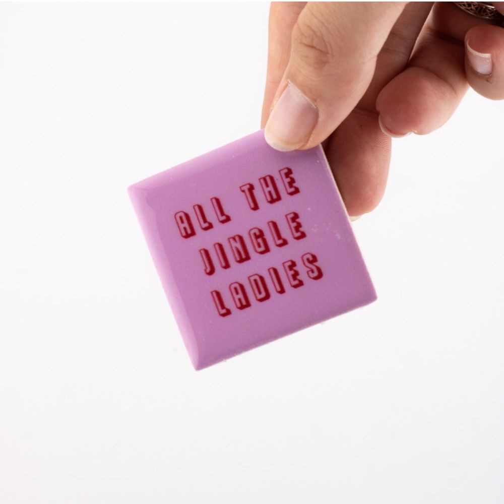 Breng een vleugje humor en swing in de feestdagen met dit vrolijke All the Jingle Ladies magneettegeltje! De speelse tekst en feestelijke uitstraling maken hem tot een echte blikvanger. Perfect voor iedereen die houdt van gezelligheid, een knipoog én een beetje glitter & glamour. ✨💖