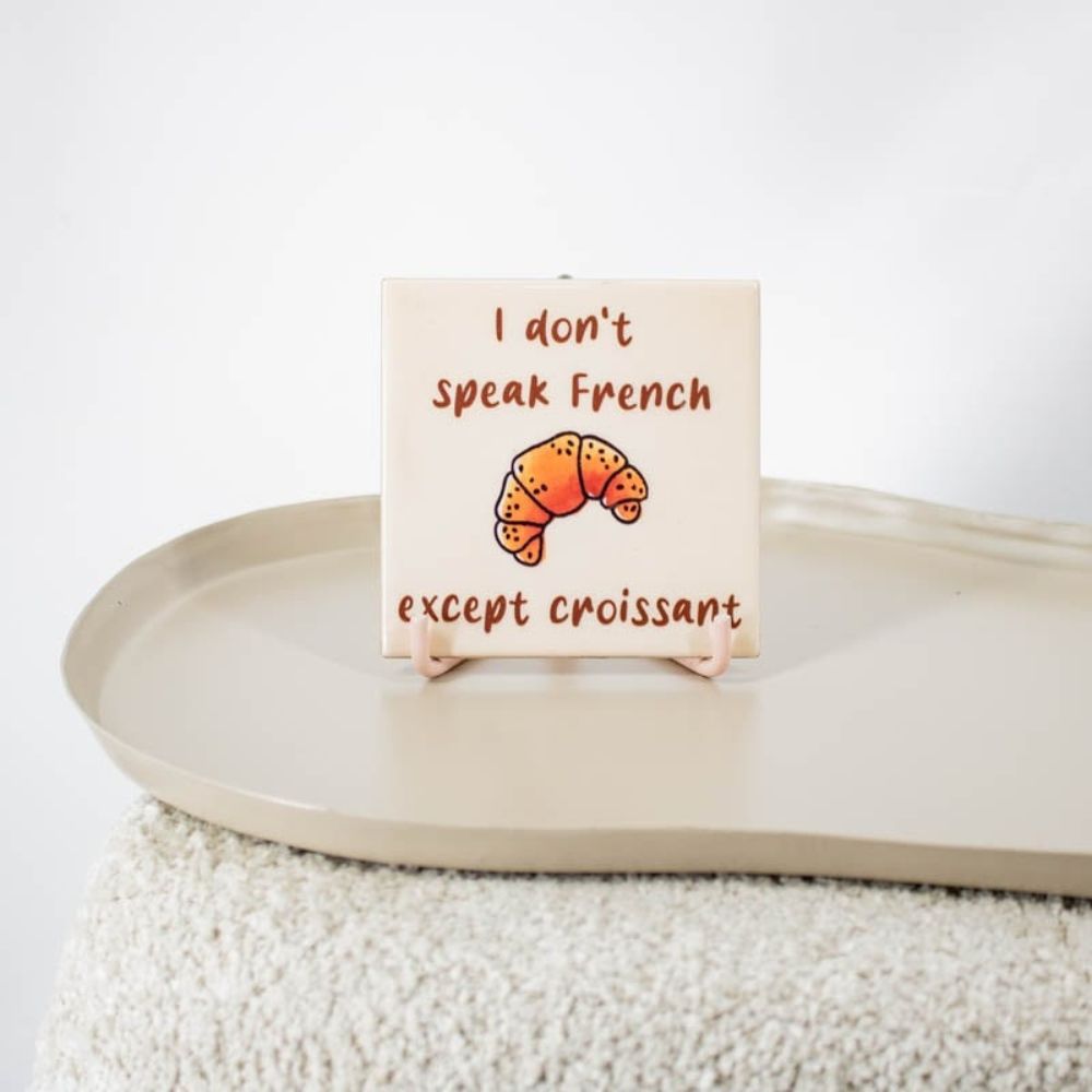 I donβt speak Frenchβ¦ except croissant. Oui oui! Dit vrolijke tegeltje laat zien dat je geen talenwonder hoeft te zijn om de Γ©cht belangrijke woorden te kennen. πβ¨