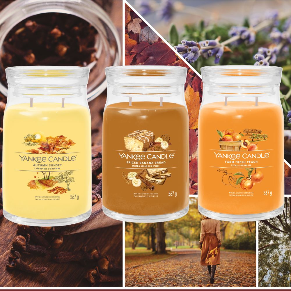 Geniet van de gezelligheid van het najaar met deze speciale voordeelbundel van Yankee Candle. Drie heerlijke geuren en warme kleuren die perfect passen bij de herfst, nu verkrijgbaar in de vernieuwde Signature Large Jar.