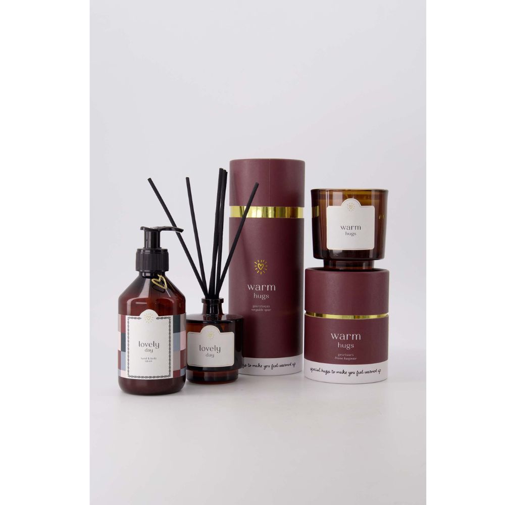 De Zusss geurkaars Warm Hugs brengt direct warmte en gezelligheid in huis. De rijke donkerrode kleur in combinatie met het stijlvolle amberkleurige glas en de bijpassende koker geeft deze kaars een warme en luxe uitstraling.