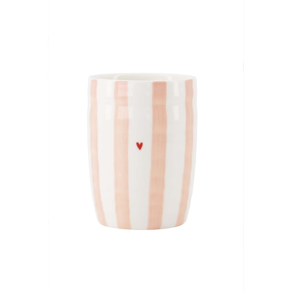 De Zusss koffiemok streep met hartje is perfect voor een vrolijk koffiemoment. Deze stijlvolle mok is gemaakt van duurzaam keramiek en heeft een frisse witte basis met roze strepen en een klein hartje als speels detail.