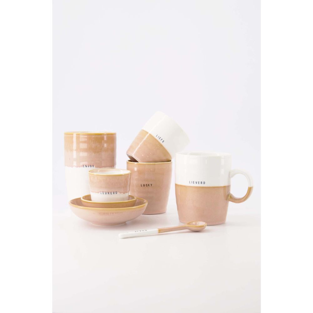 Met een formaat van 9 cm hoog ligt de mok prettig in de hand en is hij ideaal voor koffie, thee of een ander warm drankje. De lieve tekst lieveling geeft deze mok een warme en persoonlijke uitstraling â¨.