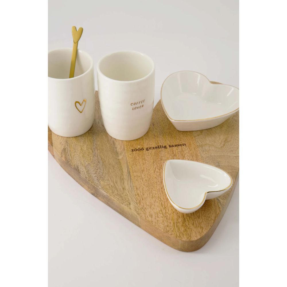Deze houten serveerplank van Zusss in de vorm van een hartje brengt meteen warmte aan tafel. Gemaakt van natuurlijk hout in een zachte, beige tint — perfect om hapjes, brood of lekkere borrelhapjes op te serveren.